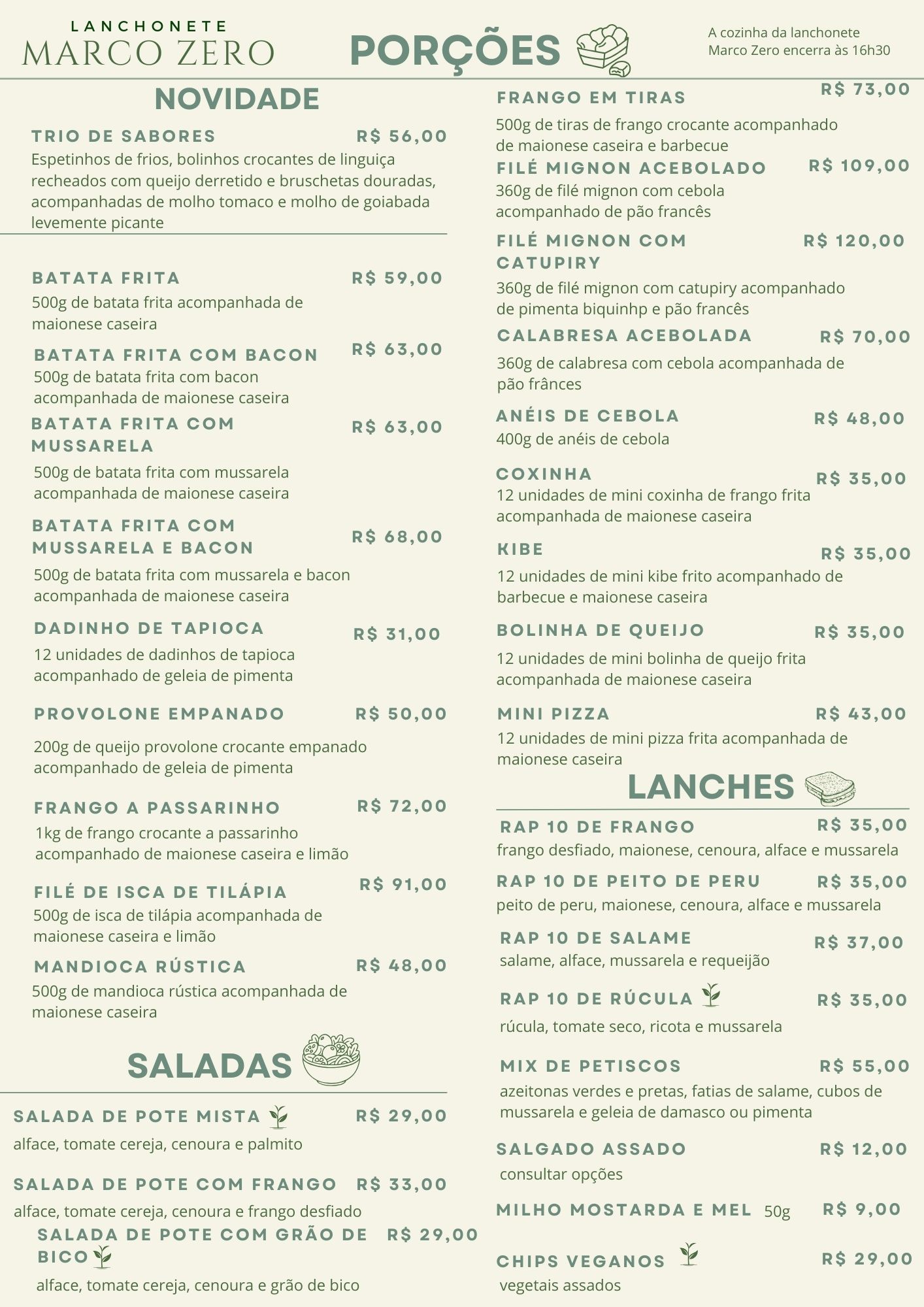 CARDÁPIOS | LANCHONETE PISCINA